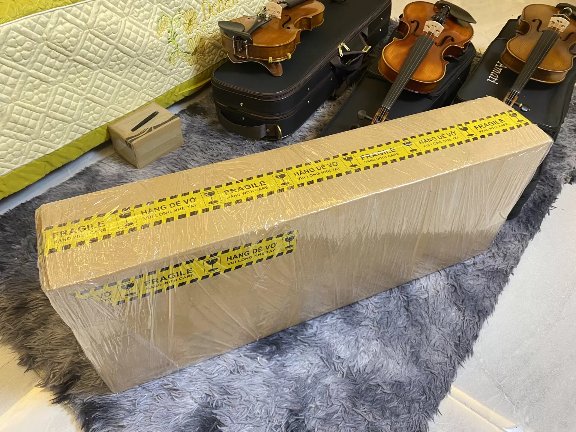 | Sản phẩm | Đàn Violin | Hộp Đựng | Hình chữ nhật màu đen, ruột nâu, có quai đeo balo |